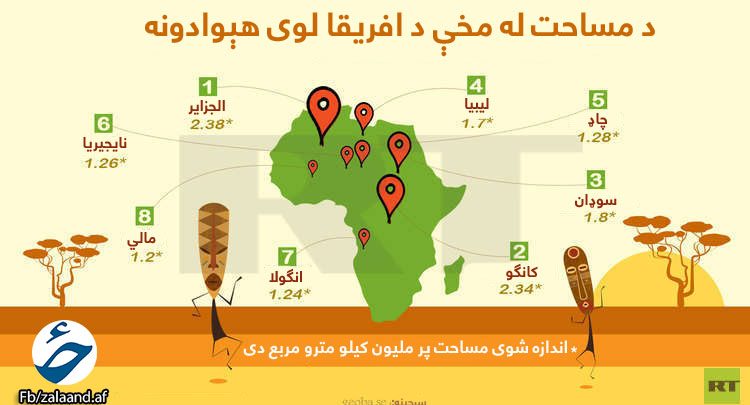 د مساحت له مخې د افریقا لوی هیوادونه (په يوه انځور کې)